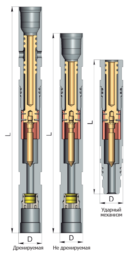 ***В случае работ в скважине с агрессивными средами ресурс головки может быть сокращен вплоть до одного залпа. После каждого отстрела для определения дальнейшего использования контролировать поверхности под уплотнительные кольца.