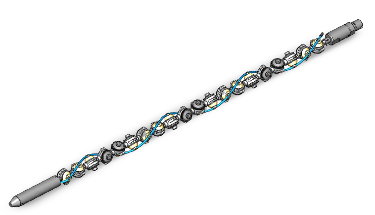 - возможность работы в скважине малого диаметра при искривленном стволе и наличии местных деформаций в обсадной колонне.