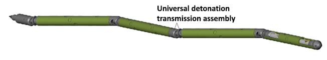 A distinguishing characteristic of such perforation systems is the detachable swivel joints, which consist of the devices for receiving and transmitting detonation. The units remain intact after the triggering of shaped charges, which allows to use the chains of perforation systems up to 500 m long. This increases the efficiency significantly and expands the scope of the devices.