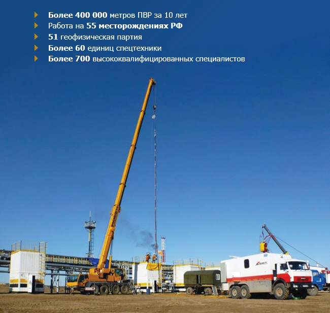 Помимо обширного спектра штатных задач, специалисты геофизических подразделений АО «БВТ» выполняют уникальные для российского нефтегазового рынка, высокотехнологичные работы, например: