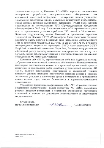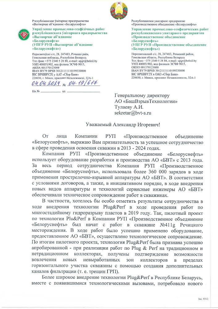 АО «БВТ» гордится долгосрочным результативными совместными проектами и успешным внедрением инновационных технологий и импортонезависимого оборудования на месторождениях РУП «Производственное объединение «Белоруснефть»!