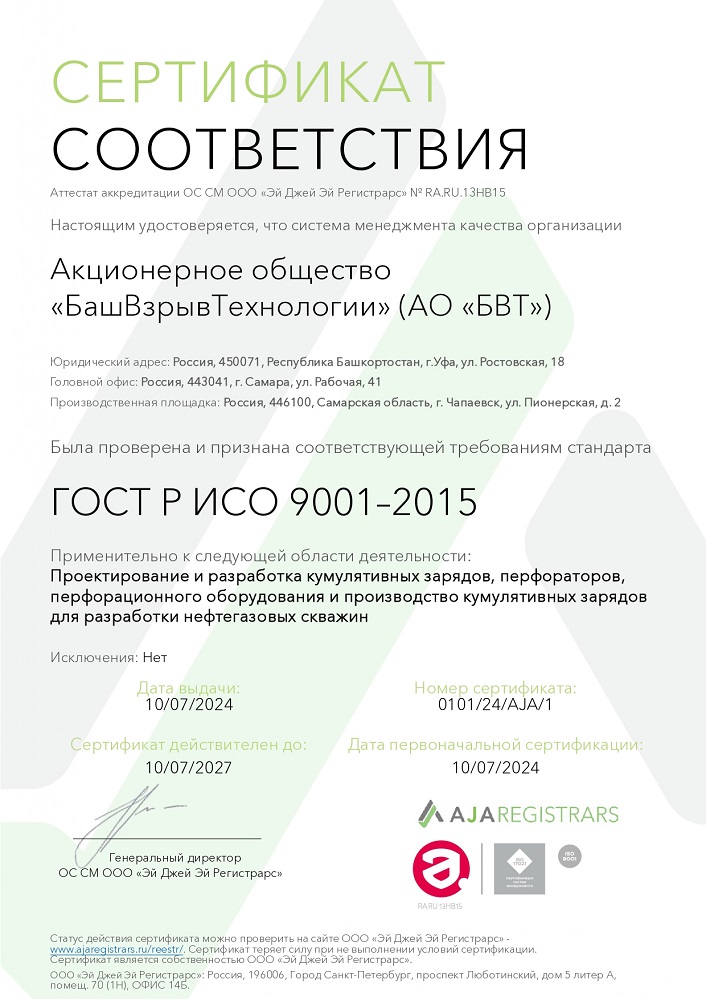 АО «БашВзрывТехнологии» является ведущим предприятием по проектированию, разработке и производству оборудования, используемого в прострелочно-взрывных работах для вскрытия продуктивных пластов при эксплуатации нефтяных и газовых скважин.