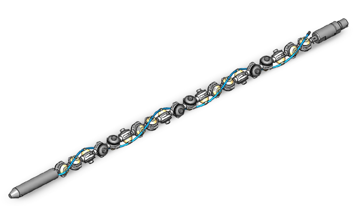 - the possibility of operation in a well with a small diameter with a deviated wellbore and local deformations in the casing string.