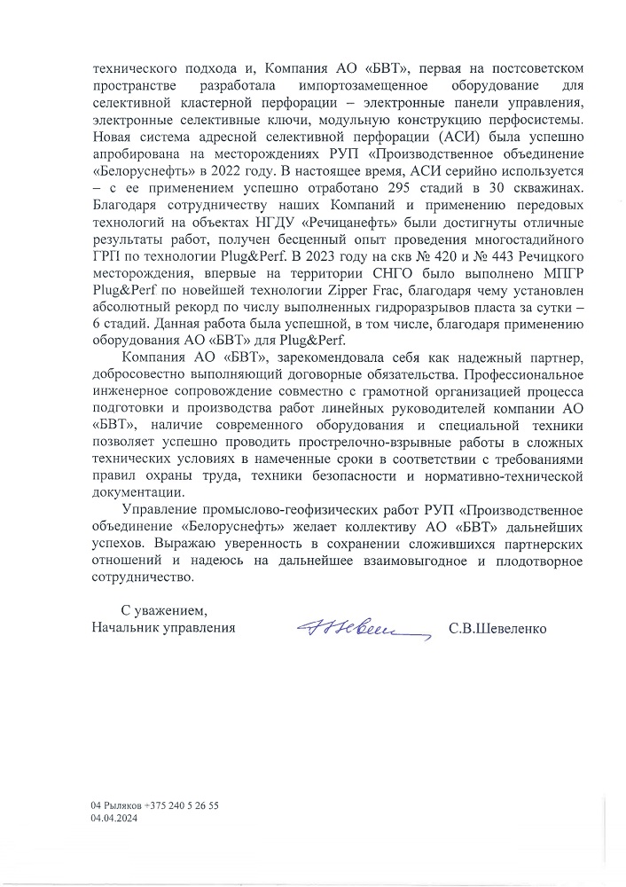 АО «БВТ» гордится долгосрочным результативными совместными проектами и успешным внедрением инновационных технологий и импортонезависимого оборудования на месторождениях РУП «Производственное объединение «Белоруснефть»!
